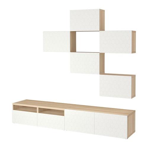 БЕСТО Шкаф для ТВ, комбинация - под беленый дуб/вассвикен белый, направляющие ящика, плавно закр