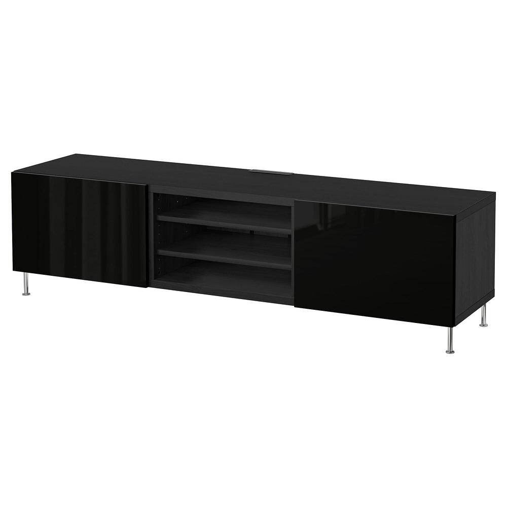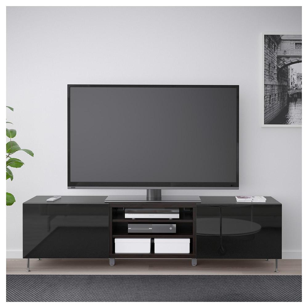 БЕСТО Тумба д/ТВ с ящиками - черно-коричневый глянцевый/черный, направляющие ящика,нажимные
