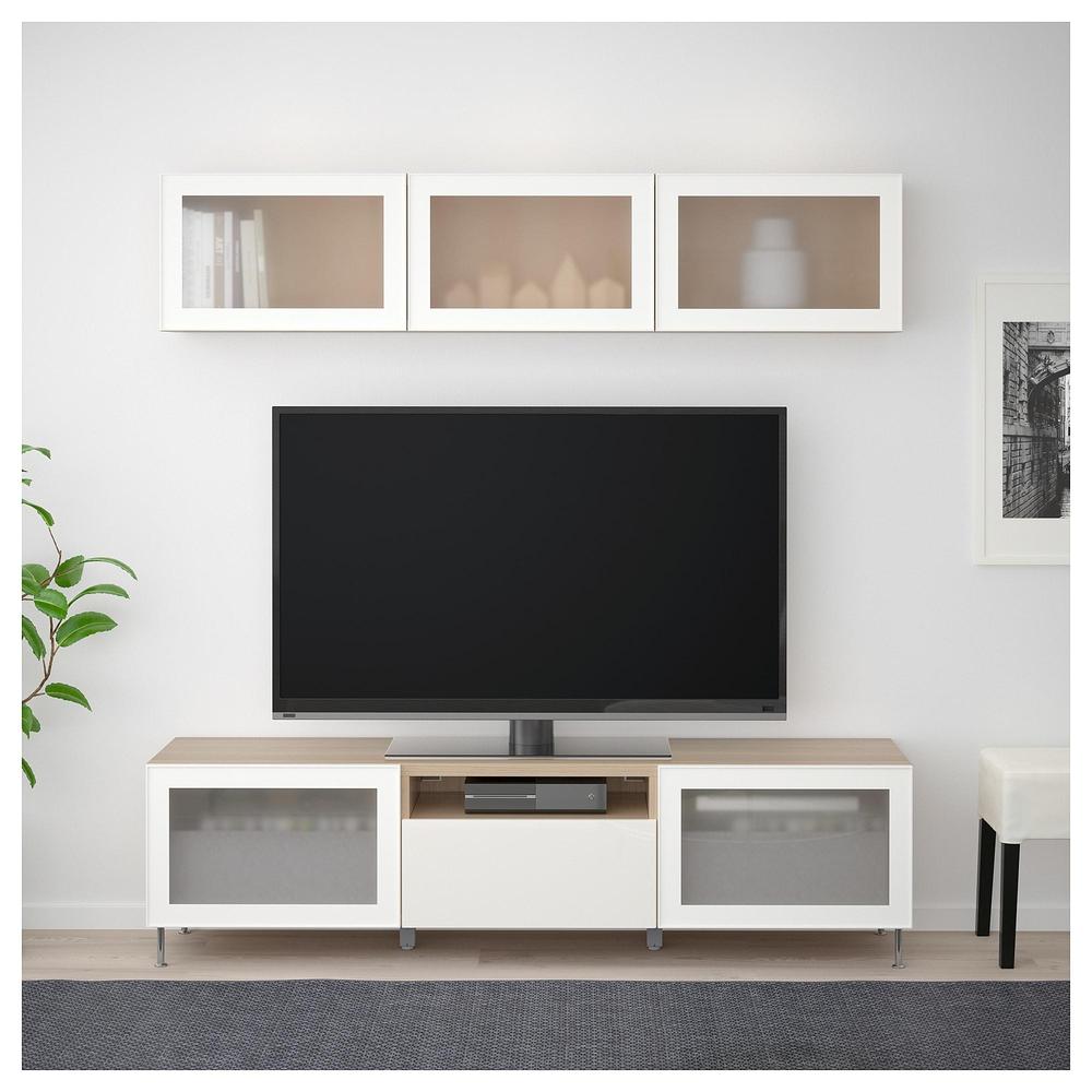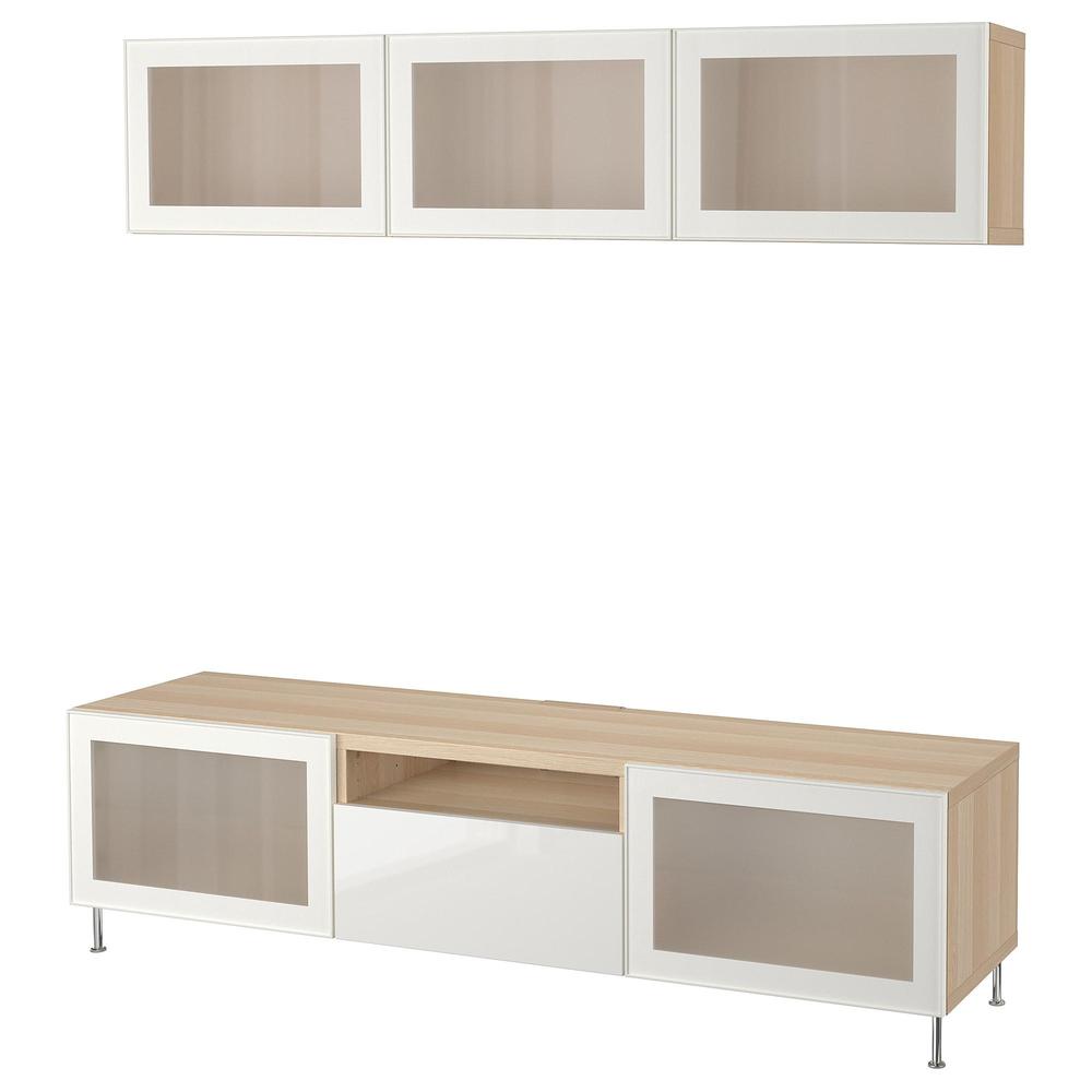 БЕСТО Шкаф для ТВ, комбин/стеклян дверцы - под беленый дуб/Сельсвикен глянцевый/белый матовое стекло, направляющие ящика, плавно закр 0.0/5 оценка (0 голосов)