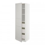 МЕТОД / МАКСИМЕРА Высокий шкаф с ящиками - белый, Лерх светло-серый, 60x60x140 см