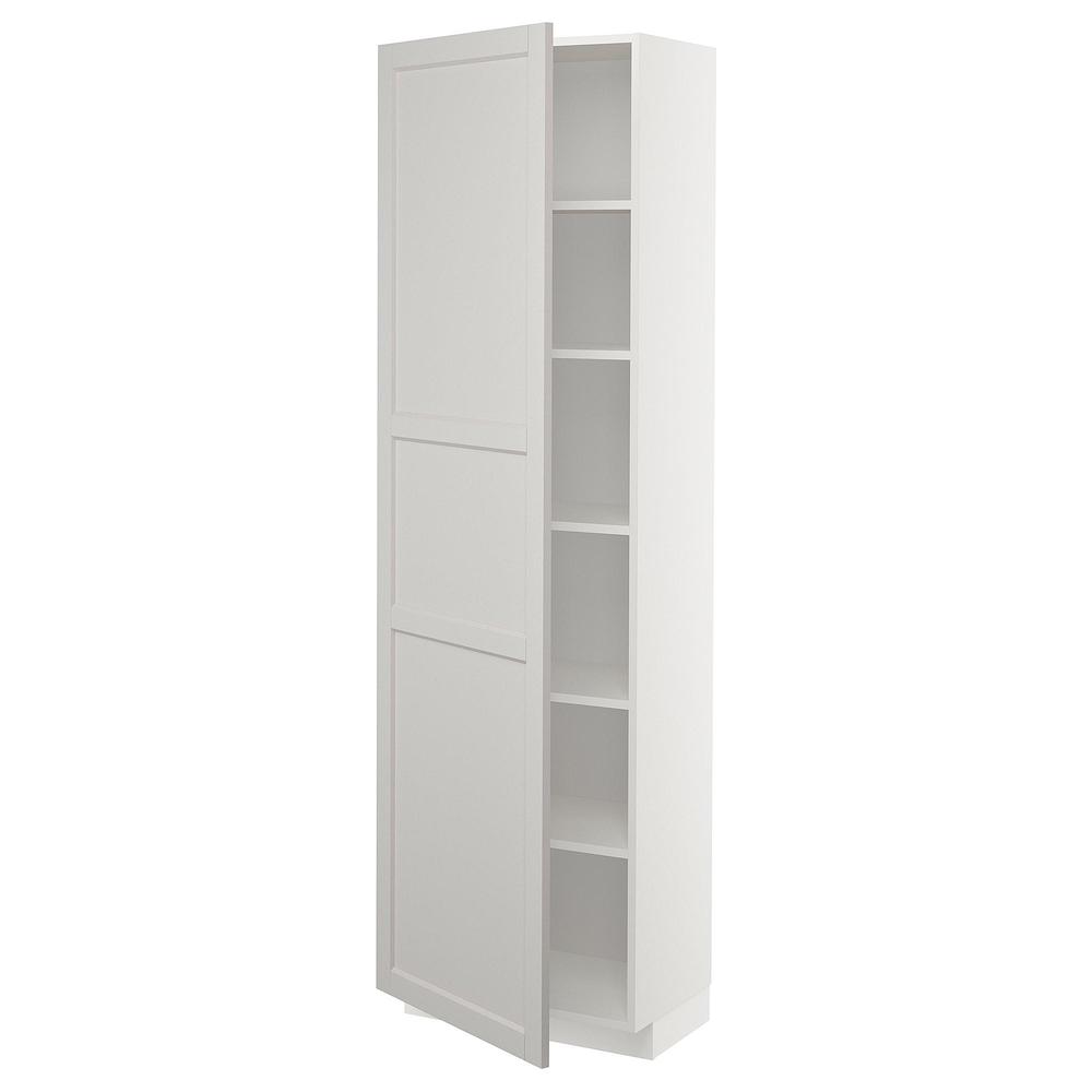 МЕТОД Высок шкаф с полками - белый, Лерх светло-серый, 60x37x200 см