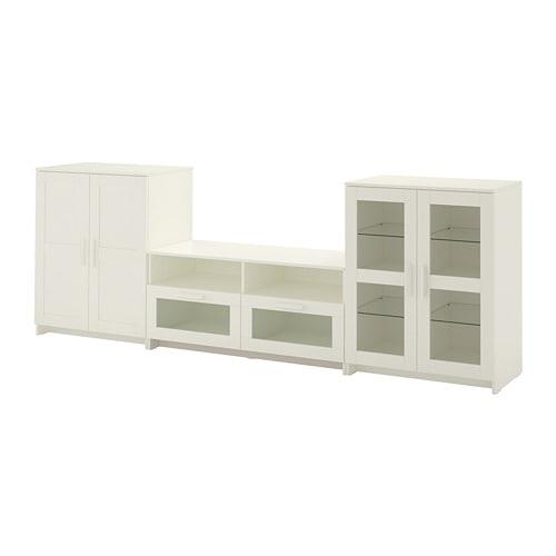 БРИМНЭС Шкаф для ТВ, комбин/стеклян дверцы - белый