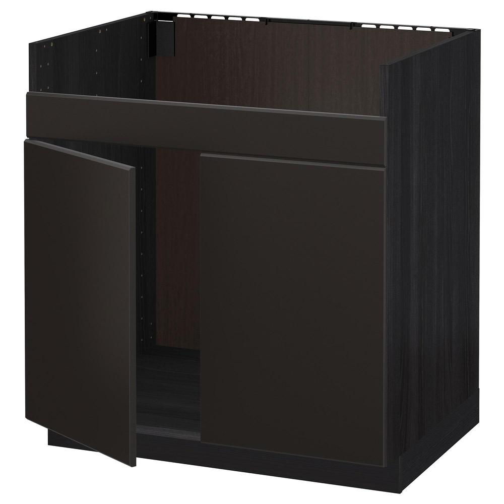 МЕТОД Напольный шкаф д/двойн мойки ХАВСЕН - под дерево черный, Кунгсбакка антрацит
