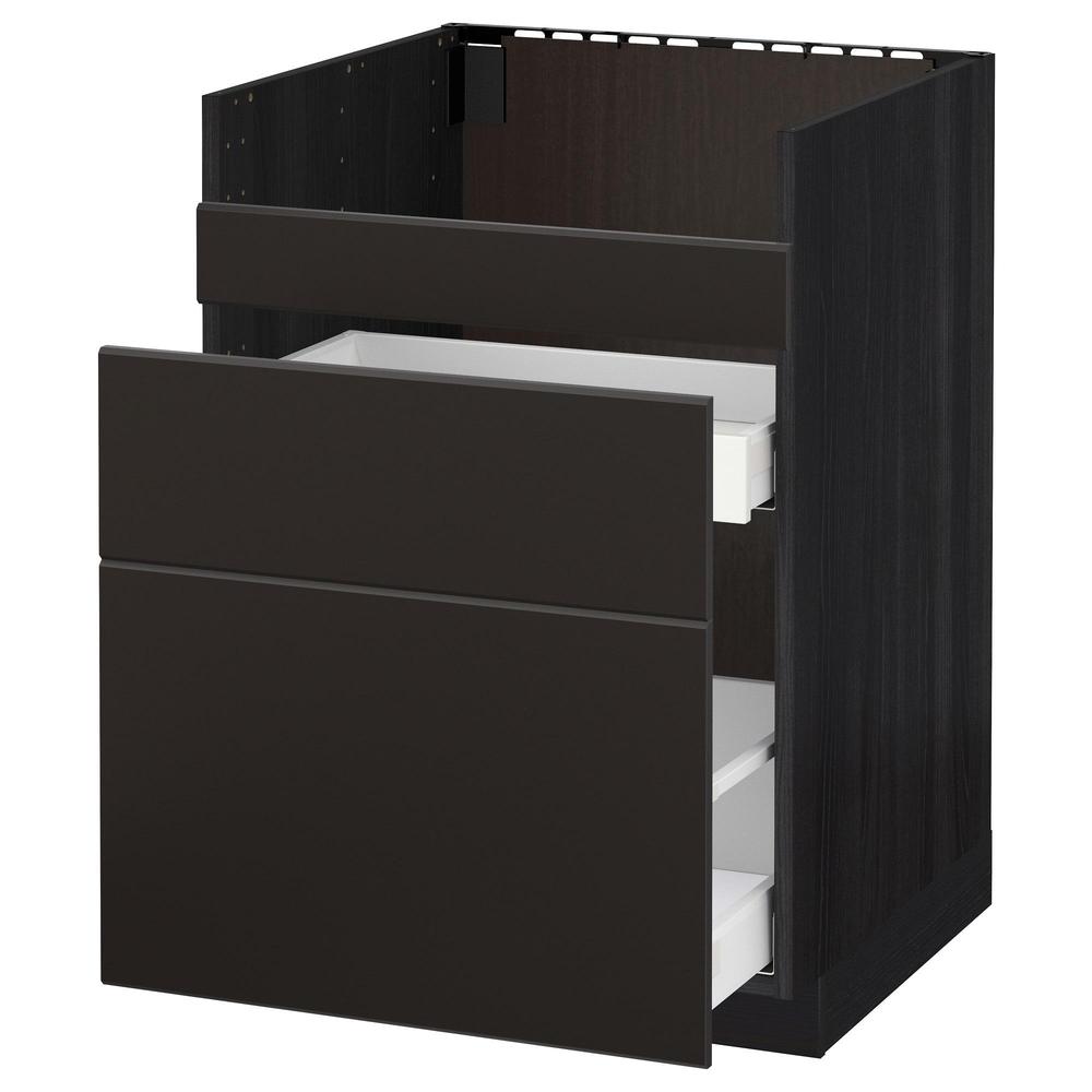 МЕТОД Напол шк д/мойки ХАВСЕН/3фасада/2ящ - под дерево черный, Кунгсбакка антрацит, 60x60 см