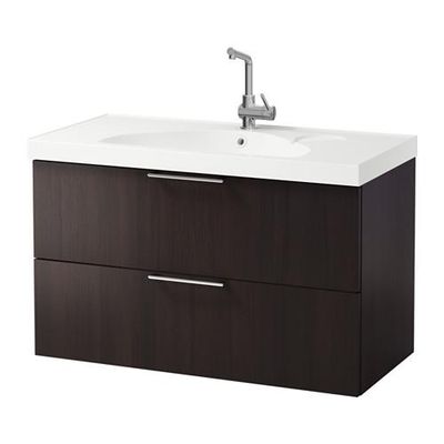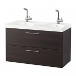 ГОДМОРГОН / ЭДЕБОВИКЕН Шкаф для раковины с 2 ящ - черно-коричневый