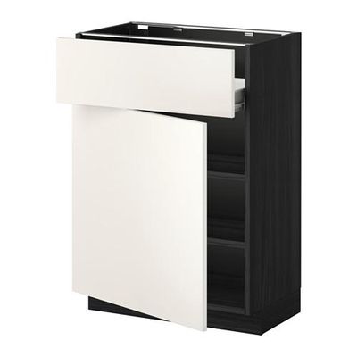 МЕТОД / ФОРВАРА Напольн шкаф с полкой/ящиком/дверью - под дерево черный, Веддинге белый, 60x37 см