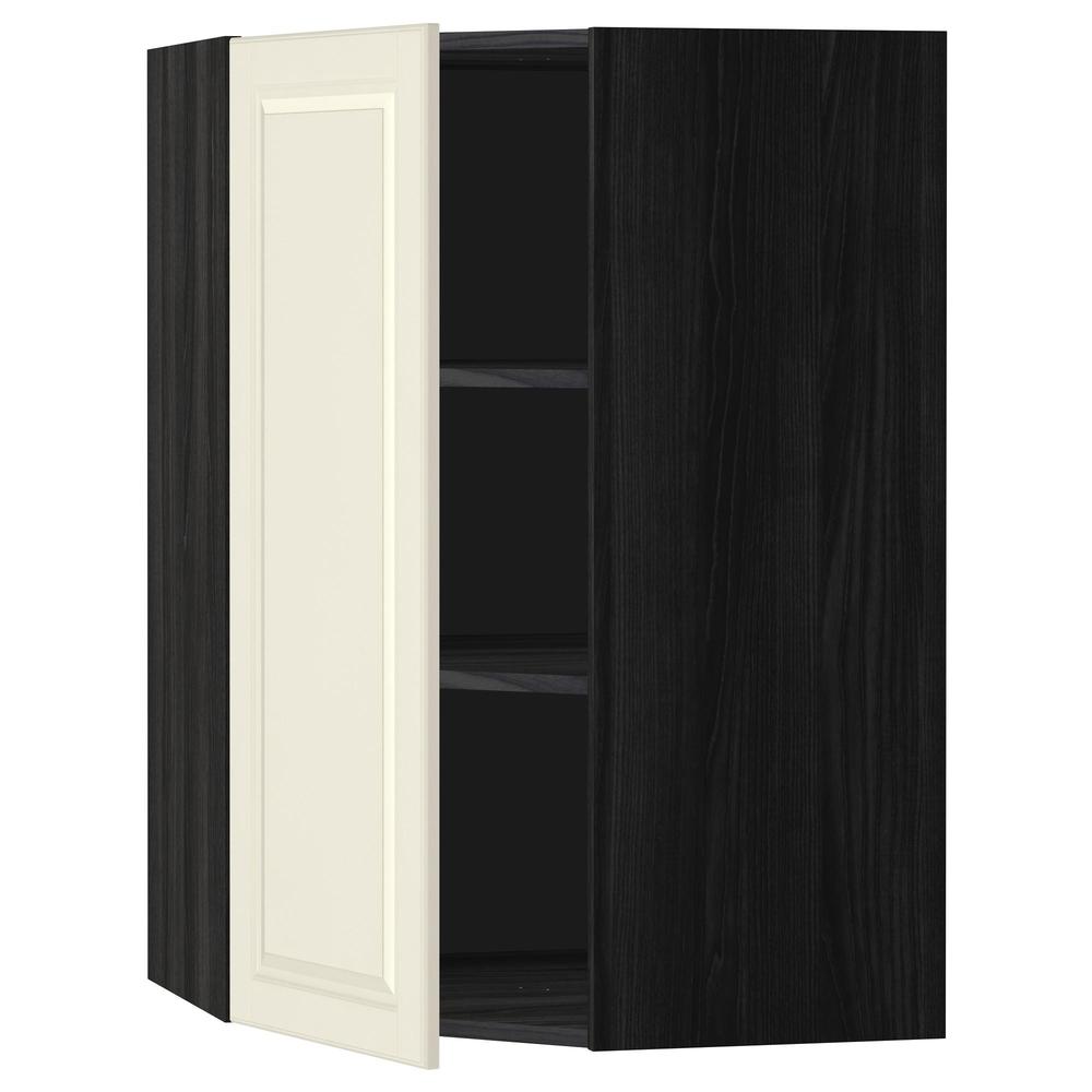 МЕТОД Угловой навесной шкаф с полками - под дерево черный, Будбин белый с оттенком, 68x100 см