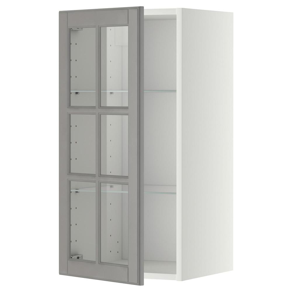 МЕТОД Навесной шкаф с полками/стекл дв - белый, Будбин серый, 40x80 см