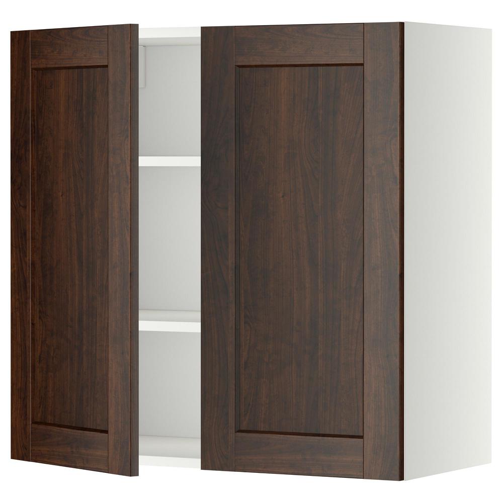 МЕТОД Навесной шкаф с полками/2дверцы - белый, Эдсерум под дерево коричневый, 80x80 см