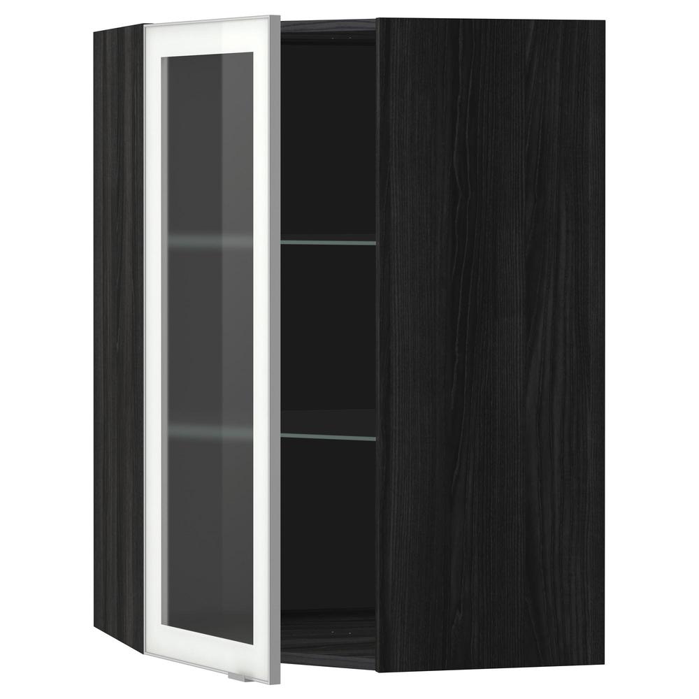 МЕТОД Углов навесн шк с полками/сткл дв - под дерево черный, Ютис матовое стекло/алюминий, 68x100 см