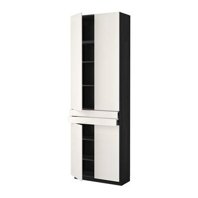 МЕТОД / ФОРВАРА Высокий шкаф+полки/2 ящика/4 дверцы - Веддинге белый, под дерево черный