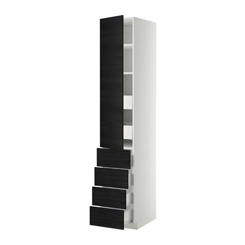 МЕТОД / ФОРВАРА Выс шкаф с плк/6 ящк/ дверц/4 фрнт - 40x60x220 см, Тингсрид под дерево черный, белый