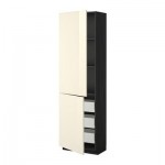 МЕТОД / ФОРВАРА Высокий шкаф+полки/3 ящика/2 дверцы - 40x60x220 см, Рингульт глянцевый кремовый, под дерево черный