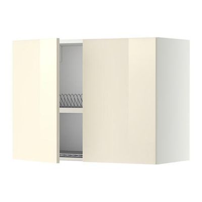 МЕТОД Навесной шкаф с посуд суш/2 дврц - 80x60 см, Рингульт глянцевый кремовый, белый