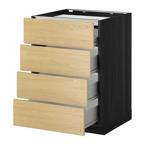 МЕТОД / ФОРВАРА Напольн шкаф/4фронт пнл/4ящика - 60x60 см, Тингсрид под березу, под дерево черный