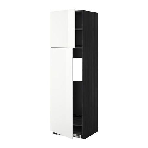 МЕТОД Высокий шкаф д/холодильника/2дверцы - под дерево черный, Рингульт глянцевый белый, 60x60x200 см