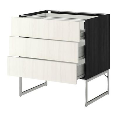 МЕТОД / ФОРВАРА Напольн шкаф 3фронт пнл/2низ/2ср ящ - 80x60x60 см, Росдаль белый ясень, под дерево черный