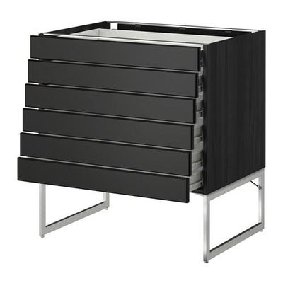 МЕТОД / ФОРВАРА Напольн шкаф 6фронт пнл/6 низ ящ - 80x60x60 см, Лаксарби черно-коричневый, под дерево черный