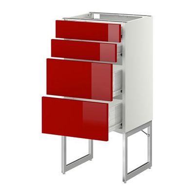 МЕТОД / ФОРВАРА Нплн шк 4 фронт/2 низк/2средн ящ - 40x37x60 см, Рингульт глянцевый красный, белый
