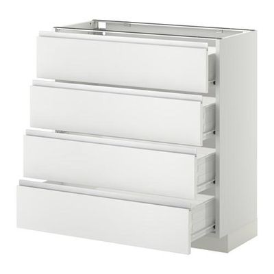 МЕТОД / ФОРВАРА Напольн шкаф 4 фронт панели/4 ящика - 80x37 см, Нодста белый/алюминий, белый