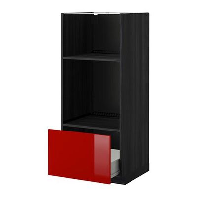 МЕТОД / ФОРВАРА Высокий шкаф с ящиком д/духовки/СВЧ - Рингульт глянцевый красный, под дерево черный
