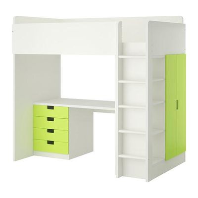 СТУВА Кровать-чердак/4 ящика/2 дверцы - белый/зеленый
