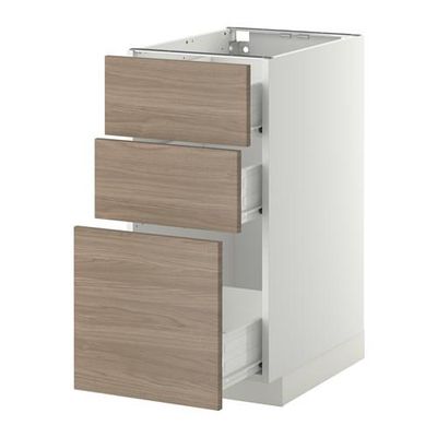 МЕТОД / ФОРВАРА Напольный шкаф с 3 ящиками - 40x60 см, Брокхульт под грецкий орех светло-серый, белый