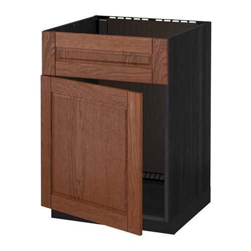 МЕТОД Напольный шкаф п-мойку с дв/фр пнл - под дерево черный, Филипстад коричневый
