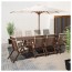 Стол (мин. длина 140 см, ср. длина 200 см, макс. длина 260 см, ширина 78 см, высота 72 см); стул (ширина 63 см, глубина 80 см, высота 101 см; ширина сиденья 44 см, глубина сиденья 48 см, высота сиденья 41 см).