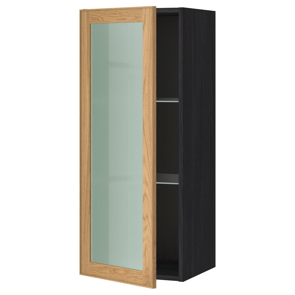 МЕТОД Навесной шкаф с полками/стекл дв - под дерево черный, Экестад дуб, 40x100 см