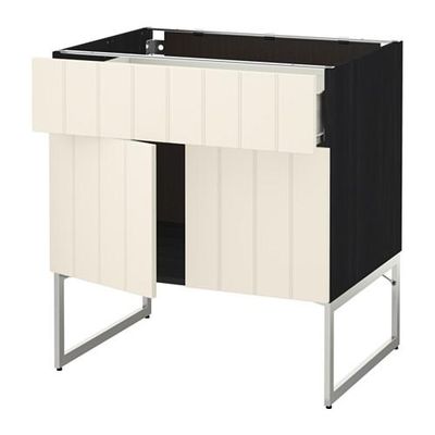 МЕТОД / ФОРВАРА Напол шкаф/полки/ящик/2двери - под дерево черный, Хитарп белый с оттенком