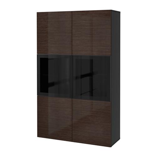 БЕСТО Комбинация д/хранения+стекл дверц - черно-коричневый/Сельсвикен глянцевый/коричневый прозрач стекло