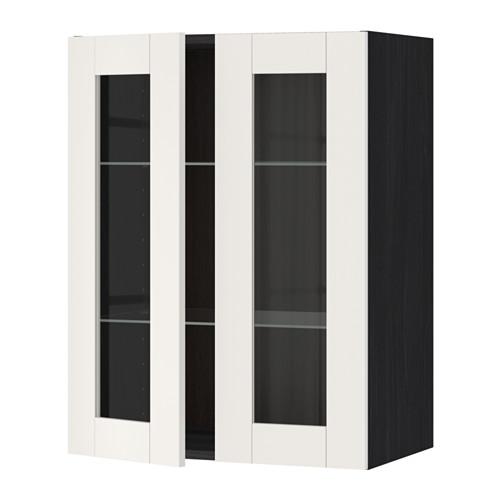 МЕТОД Навесной шкаф с полками/2 стекл дв - под дерево черный, Сэведаль белый, 60x80 см