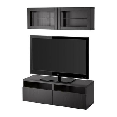 БЕСТО Шкаф для ТВ, комбин/стеклян дверцы - Лаппвикен/Синдвик черно-коричневый прозрачное стекло, направляющие ящика,нажимные