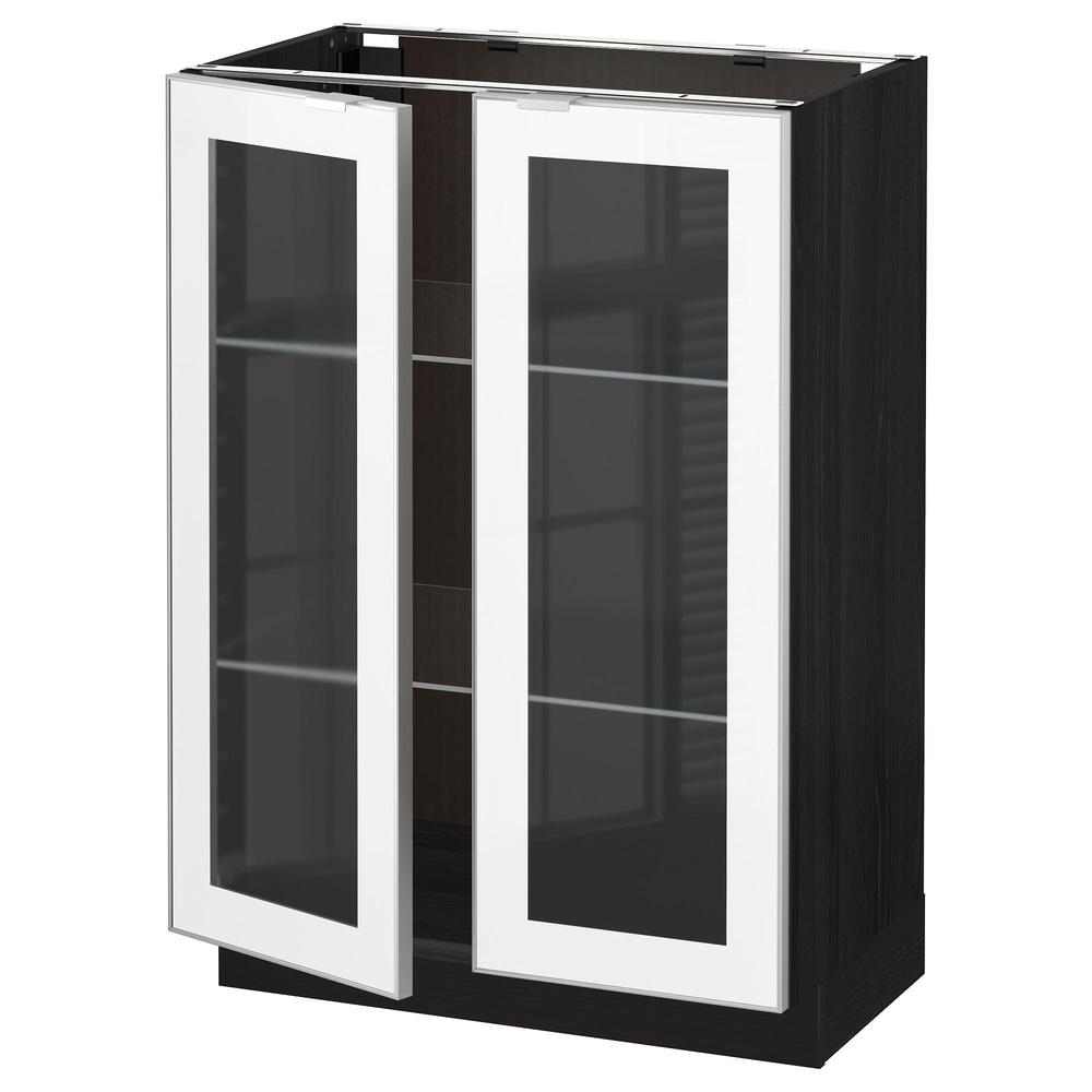 МЕТОД Напольный шкаф с 2 стекл дверцами - под дерево черный, 60x37x80 см