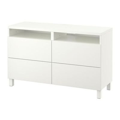 БЕСТО Тумба д/ТВ с ящиками - Лаппвикен белый, направляющие ящика, плавно закр