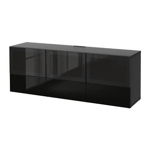 БЕСТО Тумба под ТВ, с дверцами и ящиками - черно-коричневый/Сельсвикен глянцевый/черный дымчатое стекло, направляющие ящика, плавно закр