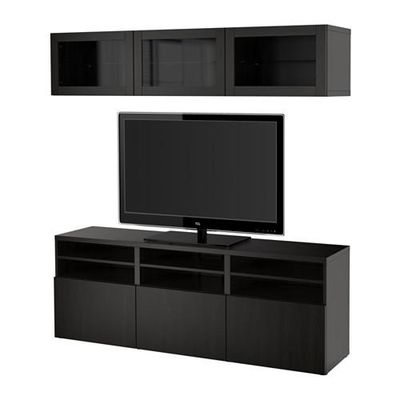 БЕСТО Шкаф для ТВ, комбин/стеклян дверцы - Лаппвикен/Синдвик черно-коричневый прозрачное стекло, направляющие ящика, плавно закр
