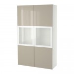 БЕСТО Комбинация д/хранения+стекл дверц - под беленый дуб/Сельсвикен глянцевый/бежевый матовое стекло
