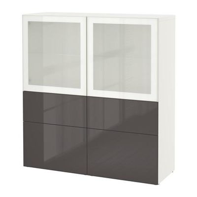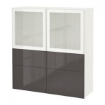 БЕСТО Комбинация д/хранения+стекл дверц - белый/Сельсвикен глянцевый/серый матовое стекло, направляющие ящика, плавно закр