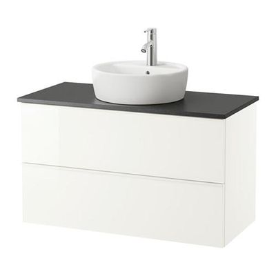 ГОДМОРГОН/АЛДЕРН / ТОРНВИКЕН Шкаф п-раковину/столешн45/раковина - черный под камень, глянцевый белый