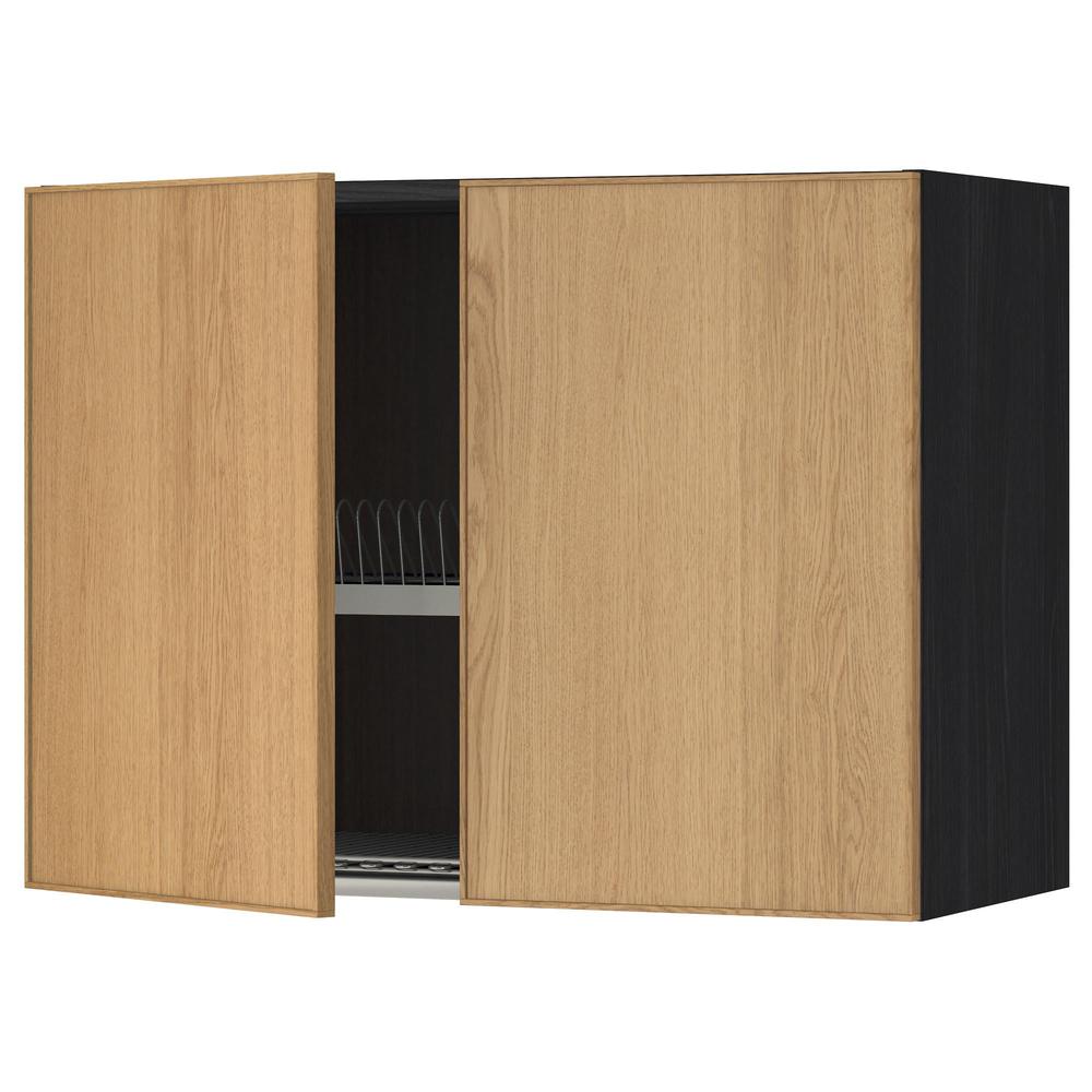 МЕТОД Навесной шкаф с посуд суш/2 дврц - под дерево черный, Экестад дуб, 80x60 см