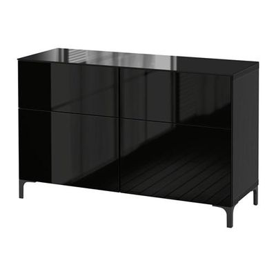 БЕСТО Комбинация для хранения с ящиками - направляющие ящика,нажимные, черно-коричневый/Сельсвикен глянцевый/черный