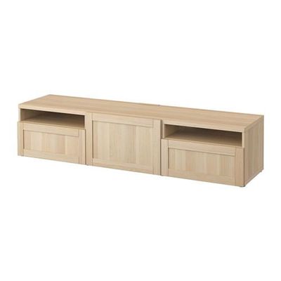 БЕСТО Тумба под ТВ - Ханвикен под беленый дуб, направляющие ящика, плавно закр