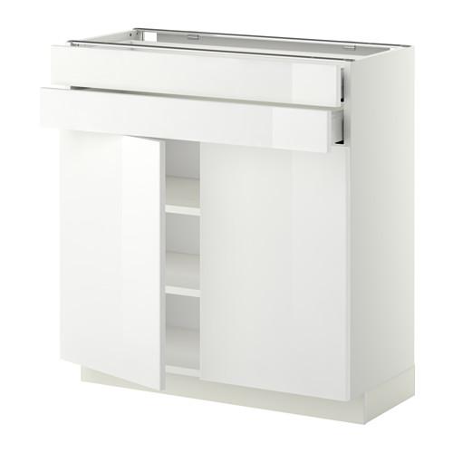 МЕТОД / МАКСИМЕРА Напольный шкаф/2дверцы/2ящика - белый, Рингульт глянцевый белый, 80x37 см