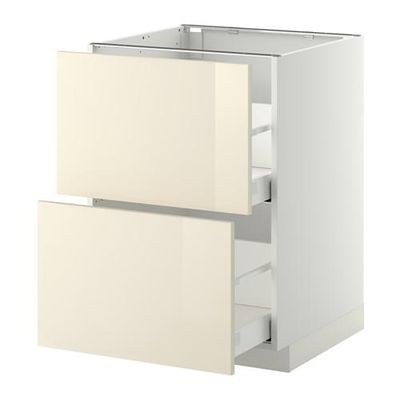 МЕТОД / МАКСИМЕРА Напольн шкаф 2фрнт/2выс ящ - 60x60 см, Рингульт глянцевый кремовый, белый