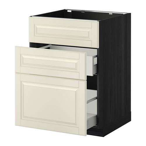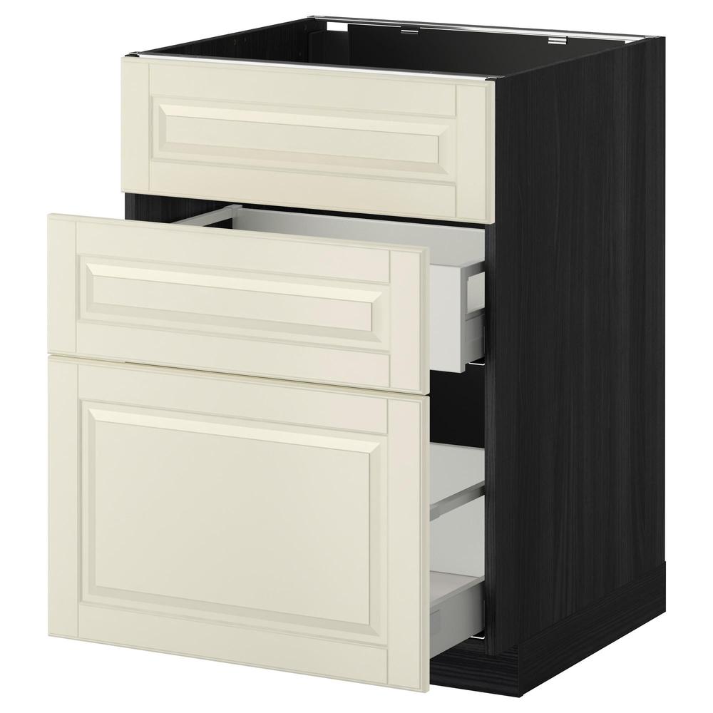МЕТОД / МАКСИМЕРА Напольн шк п-мойку+3фрнт пнл/2ящ - под дерево черный, Будбин белый с оттенком, 60x60 см