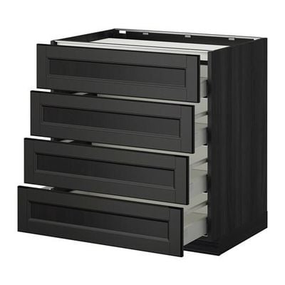 МЕТОД / МАКСИМЕРА Напольн шкаф/4фронт пнл/4ящика - 80x60 см, Лаксарби черно-коричневый, под дерево черный