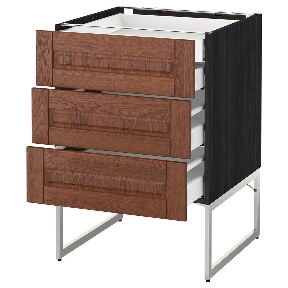 МЕТОД / МАКСИМЕРА Напольн шкаф 3фронт пнл/2низ/2ср ящ - под дерево черный, Филипстад коричневый, 40x60x60 см 0.0/5 оценка (0 голосов)