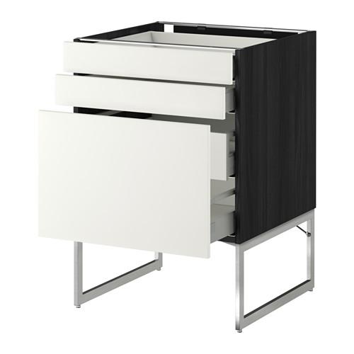 МЕТОД / МАКСИМЕРА Напольн шкаф 3фронт пнл/2низ/2ср ящ - под дерево черный, Хэггеби белый, 60x60x60 см